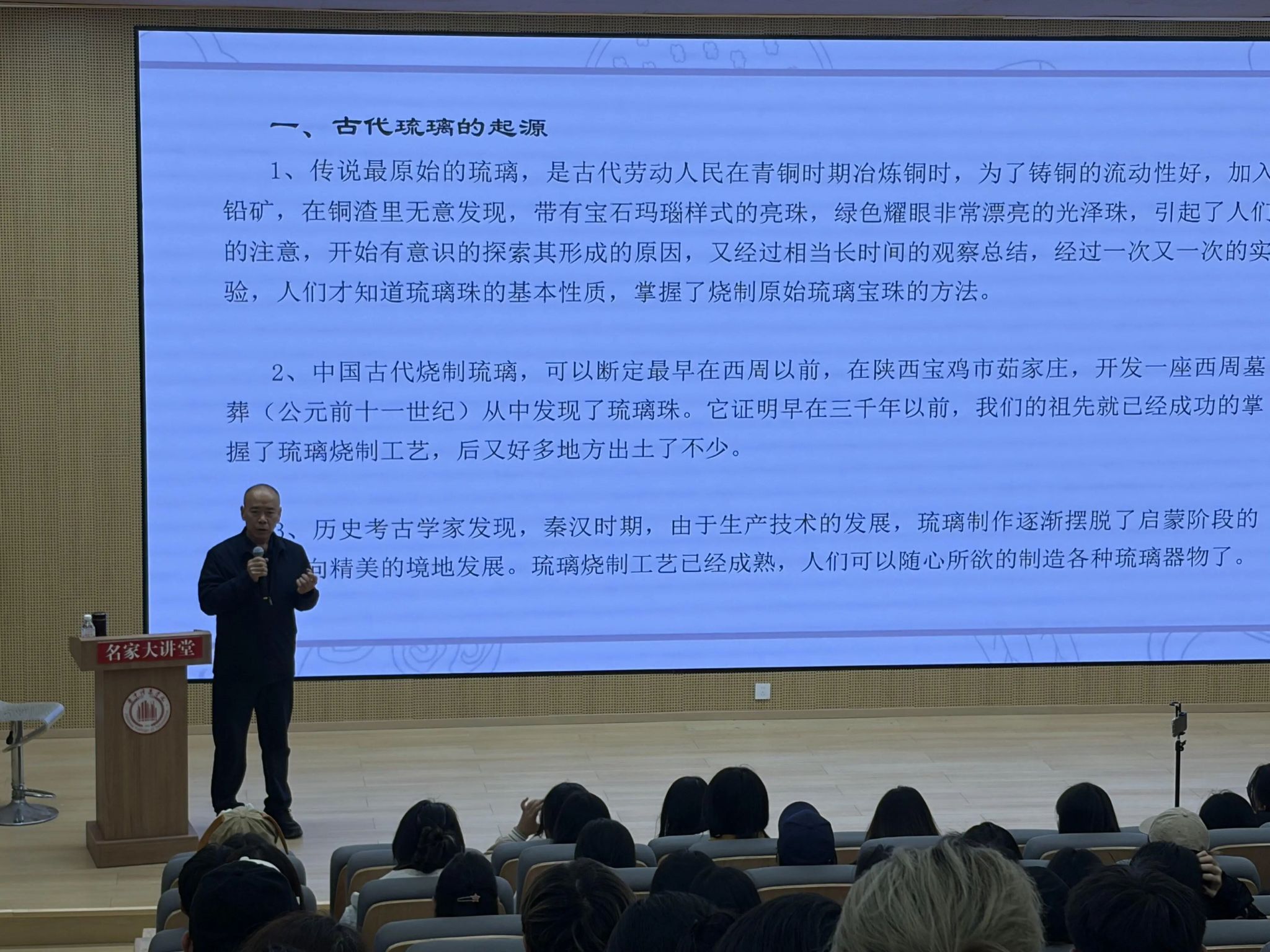 11月7日14:30,晋中信息学院ST报告厅座无虚席。晋中信息学院非物质文化遗产研究中心联合名师大讲堂邀请国家级非遗山西苏氏琉璃第八代代表性传承人、太原市工艺美术大师苏永军,带来《琉璃光韵·苏式琉璃的淬炼与传承》专题讲座。艺术传媒学院260名师生“沉浸式围观”,在火与土的共舞里,完成一场跨越500年的青春对话。