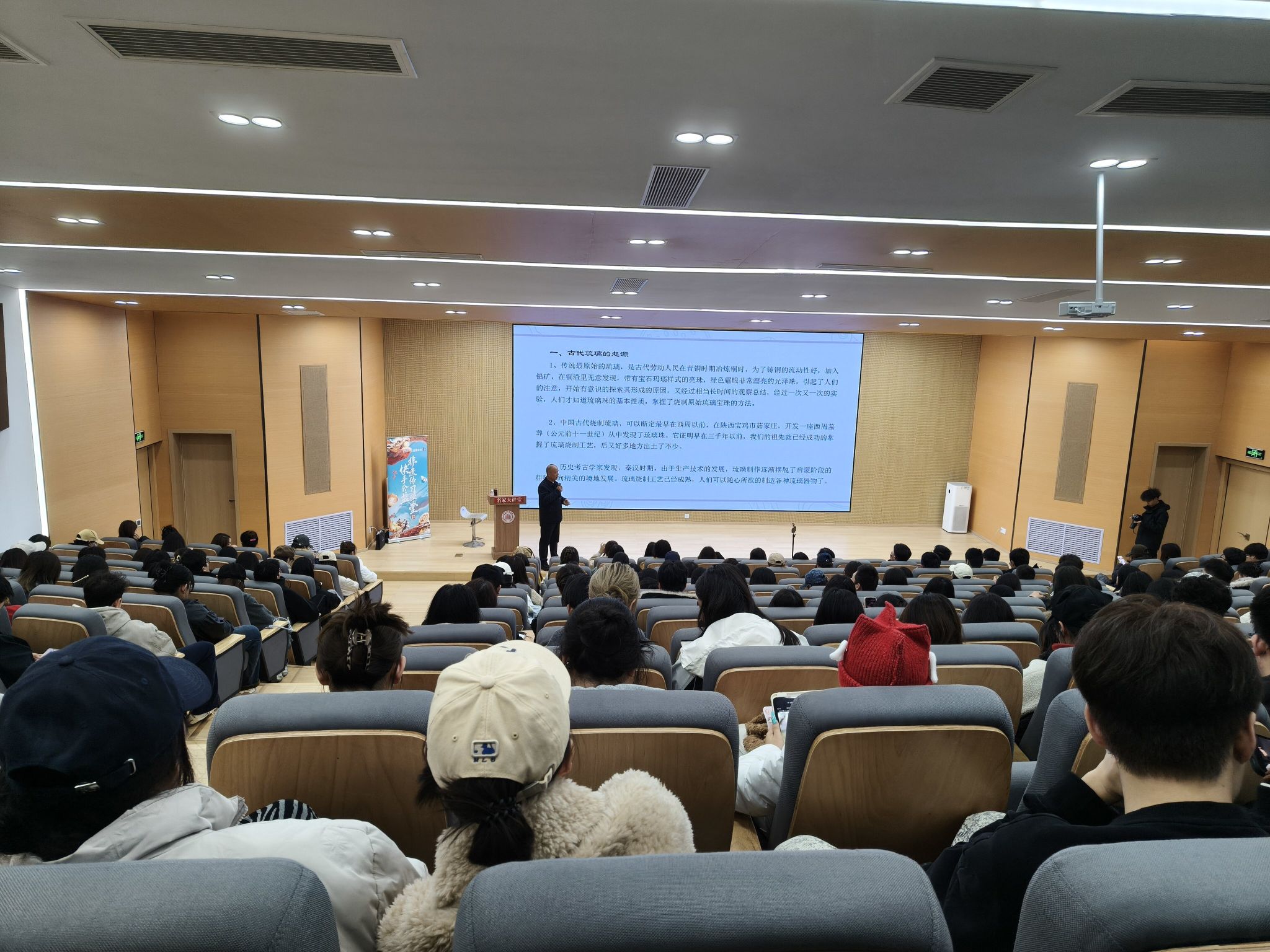 讲座核心环节,作为明清北京皇家供瓦基地的技艺传人,苏永军结合自身市级工艺美术大师的专业积淀,从琉璃的熔融淬炼工艺讲到非遗与文旅融合的创新路径,为师生系统解读了苏式琉璃的千年传承密码,让这门“火与土共舞”的古老技艺在青春校园里焕发光韵,助力学子们触摸非遗匠心、厚植文化传承意识。