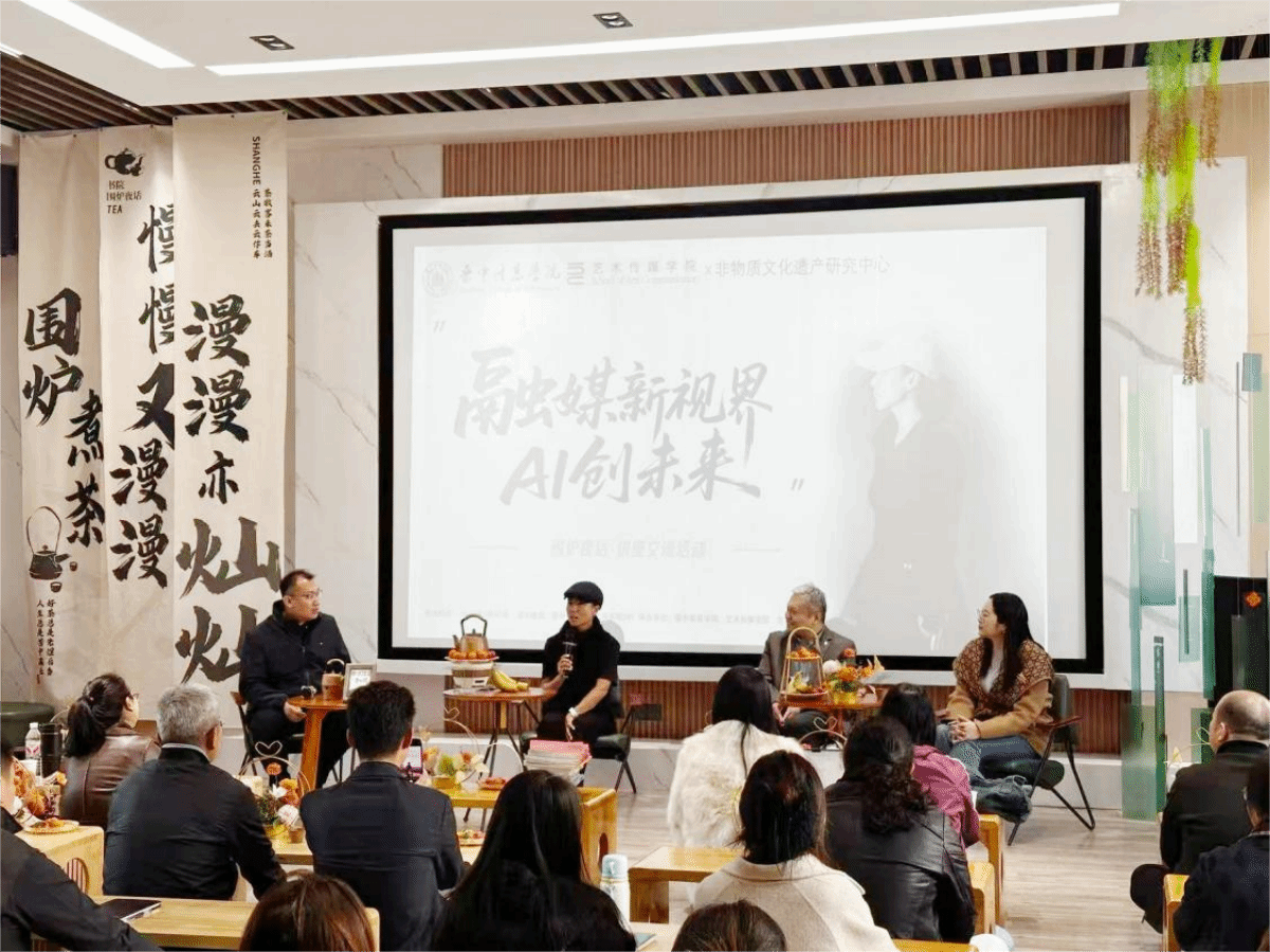 活动伊始,主持人点明了本次“围炉夜话”的深层背景:在AIGC技术迅猛发展的当下,非物质文化遗产的保护与传播正迎来历史性机遇,艺术创作的门槛与形态正在发生深刻变革。如何让AI从冰冷的工具成为富有温度的创作伙伴,如何在效率与深度之间寻找平衡,成为艺术教育与实践必须直面的话题。