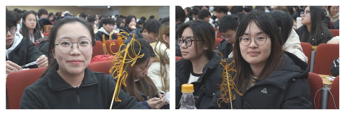 演示结束后,孟老师还与在座学生进行了积极互动。为了鼓励同学们对非遗文化的学习热情,孟老师还亲手为那些积极回答问题的同学制作了他们心仪的糖画形象。拿到亲手制作的糖画,同学们脸上洋溢着幸福的笑容,纷纷表示这是一次非常有意义的体验。